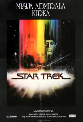 This is an original, Yugoslavian theatrical movie poster from 1987 for the initial release of Star Trek IV: The Voyage Home starring William Shatner, Leonard Nimoy, DeForest Kelley, James Doohan, George Takei, Walter Koenig, Nichelle Nichols and Catherine Hicks. Leonard Nimoy also directed the Star Trek sequel.